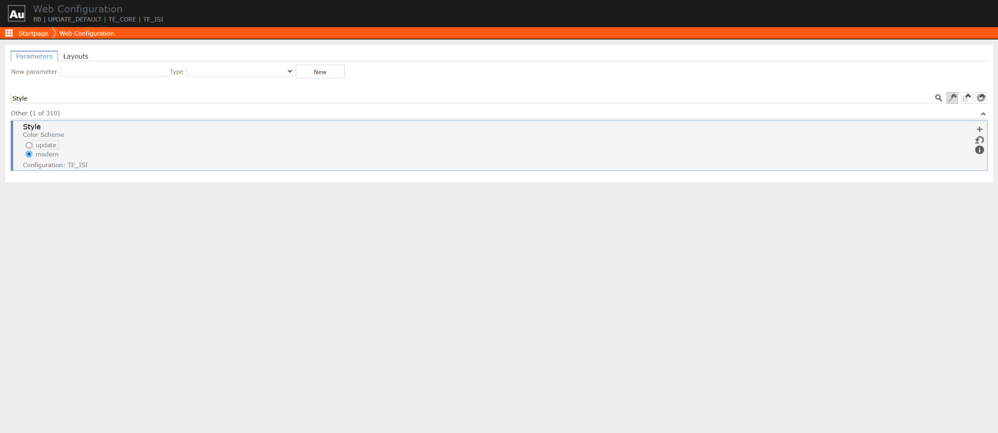 - Navigate to "Web Configuration," search for "Style," and select "modern."