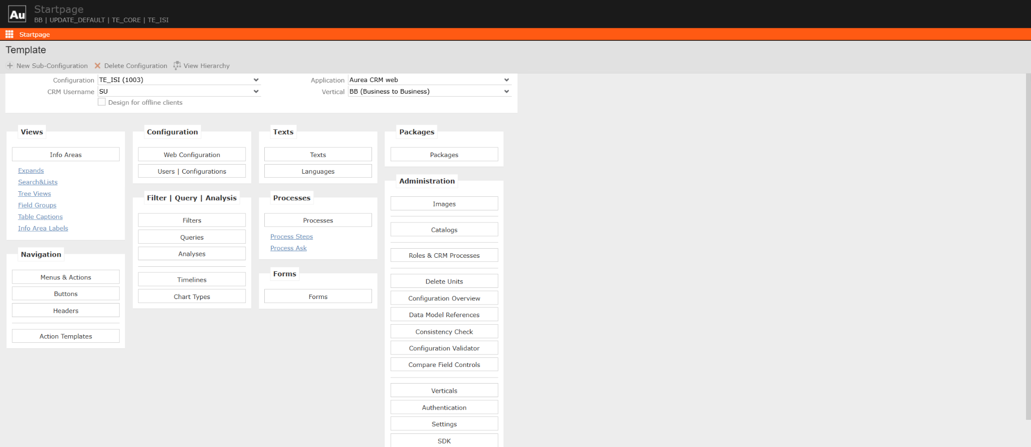 - Open the CRM.Designer and select the appropriate configuration.