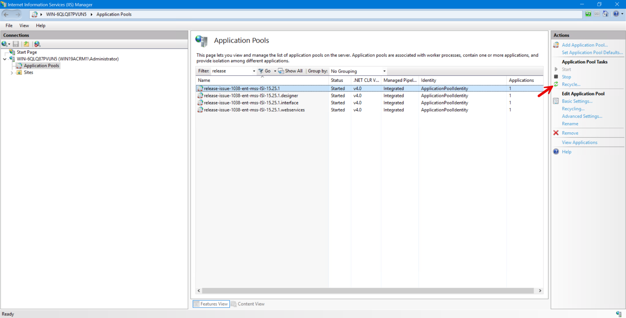 Step 3: Recycle the application pool
