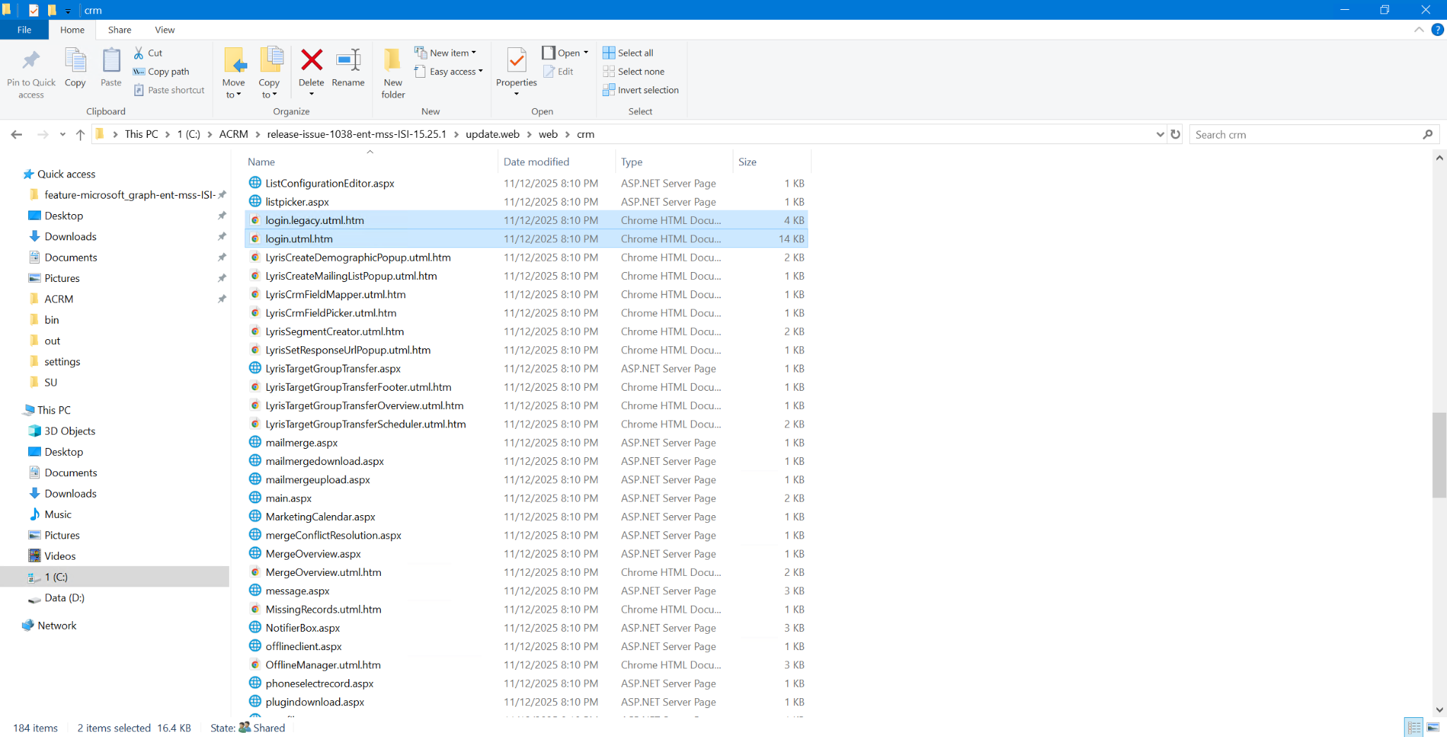 login.legacy.utml.htm). Subsequently, rename login.modern.utml.htm to login.utml.htm, as illustrated in the following screenshot.
