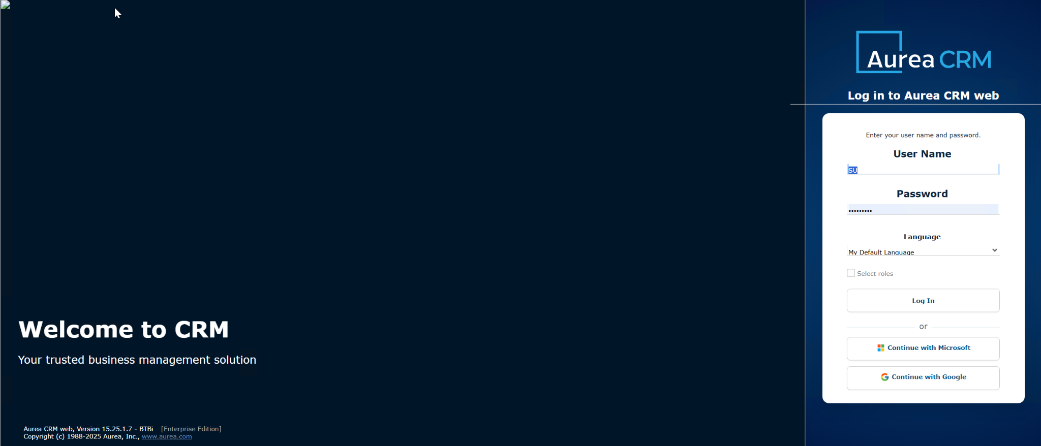 - Aurea CRM version 15.25.2 or newer must be installed.